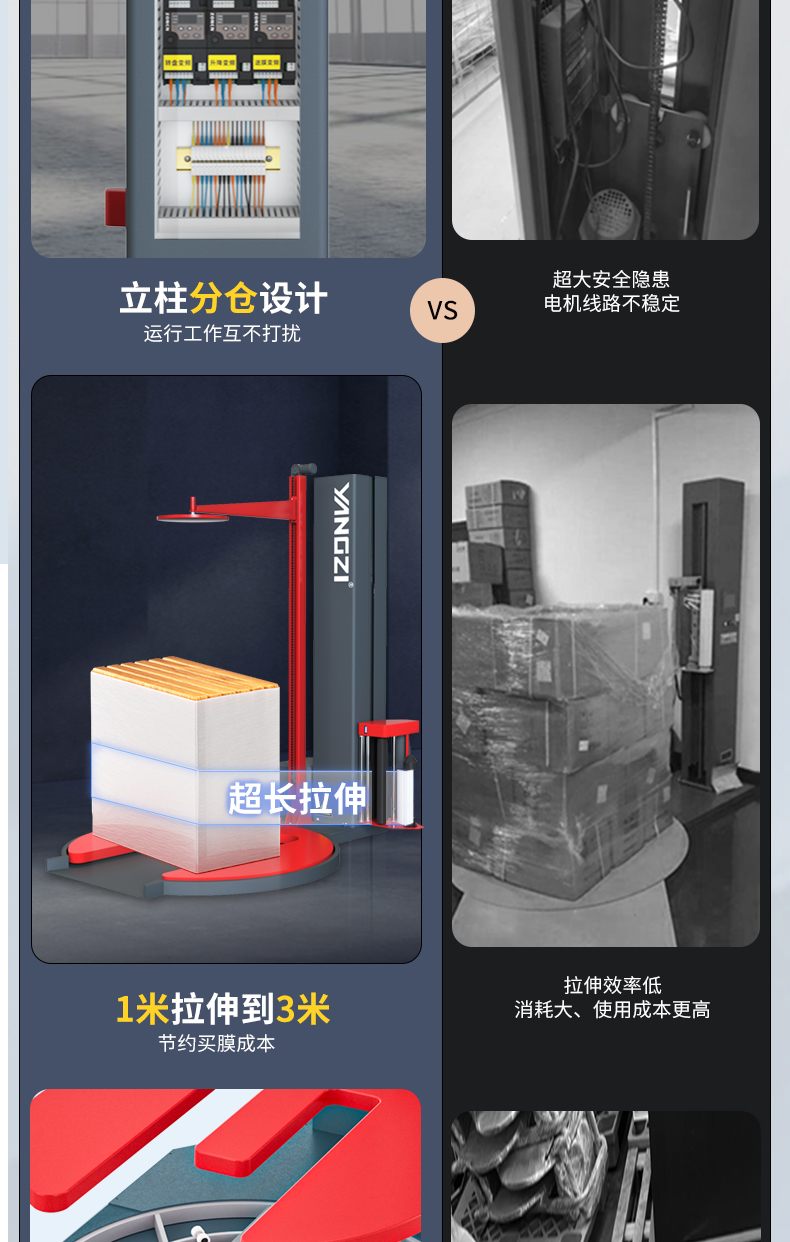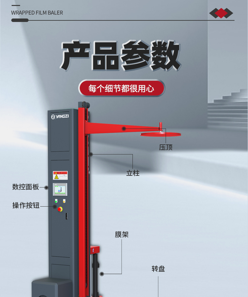 • 扬子M型压顶缠绕膜打包机是一款专为轻质、高大或不稳定托盘货物设计的自动化包装设备。它采用电动压顶装置,在缠绕包装过程中对货物顶部施加稳定压力,能有效防止货物在包装过程中出现倾斜、散垛或倒塌的现象。该设备集成预拉伸膜架,能有效拉伸缠绕膜,显著节约包装耗材。其采用PLC可编程控制系统,操作简单,能自动完成货物的缠绕包装过程。扬子M型压顶缠绕膜打包机广泛适用于制罐、空瓶以及食品饮料、化工、造纸等多个行业,能有效提升包装效率,确保货物在储存和运输过程中的稳定与安全。