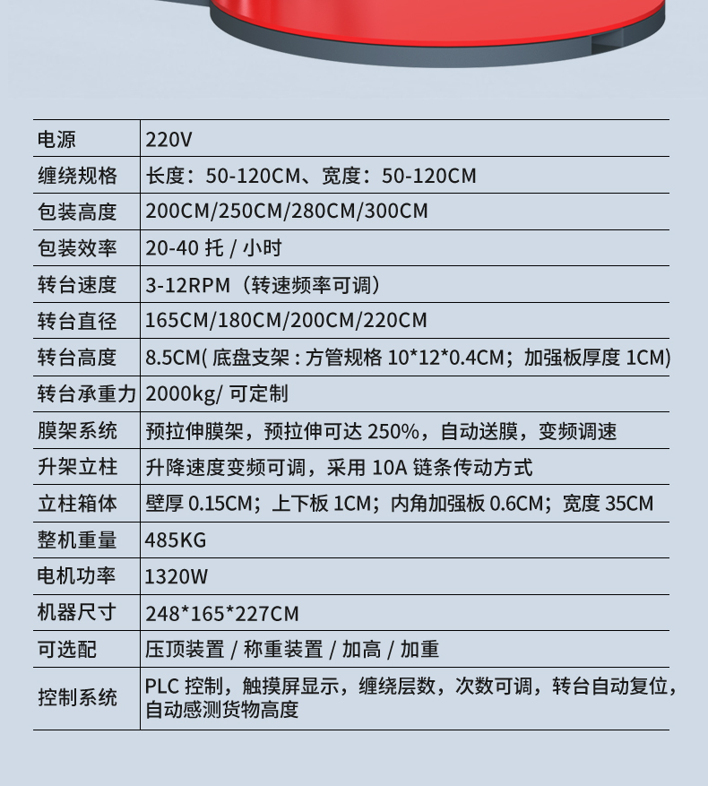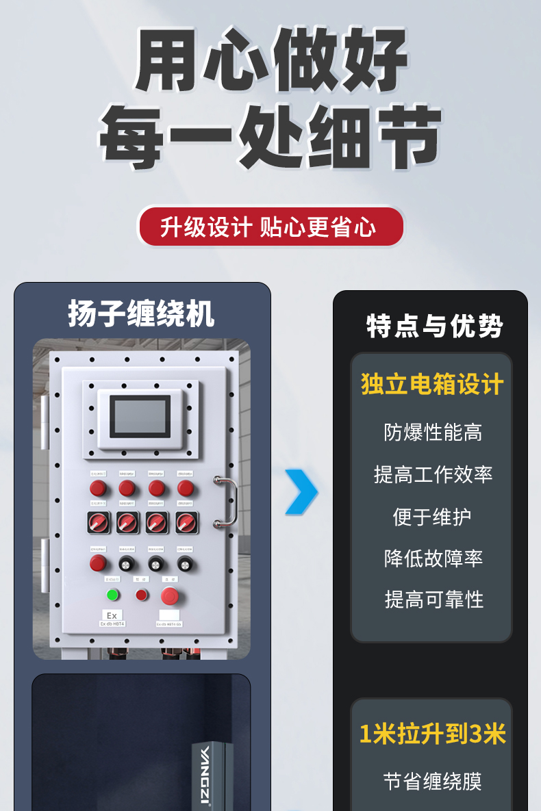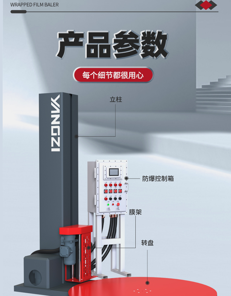 • 扬子防爆缠绕膜打包机是一款专为化工、粉尘等特殊环境设计的自动化包装设备。它采用防爆电机与电器组件,确保在易燃易爆环境中安全稳定运行,有效防范潜在风险。该设备通过PLC可编程控制系统与电感应技术,自动完成货物的缠绕包装,过程精准高效。其预拉伸膜架能显著提升薄膜利用率,拉伸率可达250%,帮助节约耗材成本。此机型兼具防尘、防潮、固定货物的功能,能有效保护产品在搬运与运输过程中的安全与完整,是提升高危行业包装效率与安全性的可靠选择。