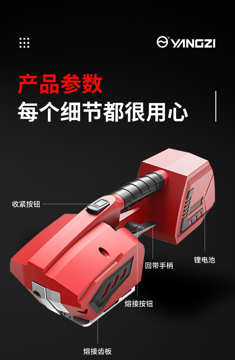 • 扬子电动打包机是一款高效便捷的包装工具,专为物流、仓储及工业生产中的捆扎需求设计。它采用电动驱动方式,操作简单省力,能快速完成塑料打包带的束紧、热熔焊接和切断过程。该设备打包牢固整齐,显著提升捆扎效率与质量,有效替代传统手动打包方式。其紧凑的结构设计便于携带与使用,广泛适用于各类纸箱、托盘及重型货物的打包固定,是企业实现包装自动化、提升作业效率的理想选择。