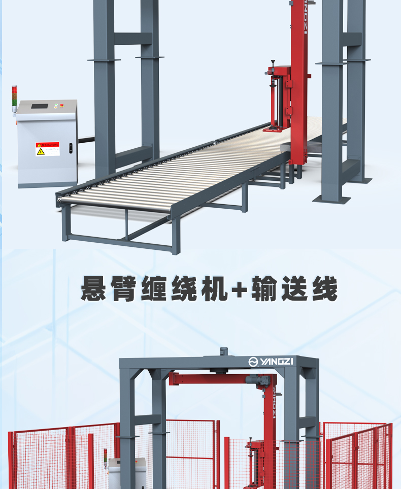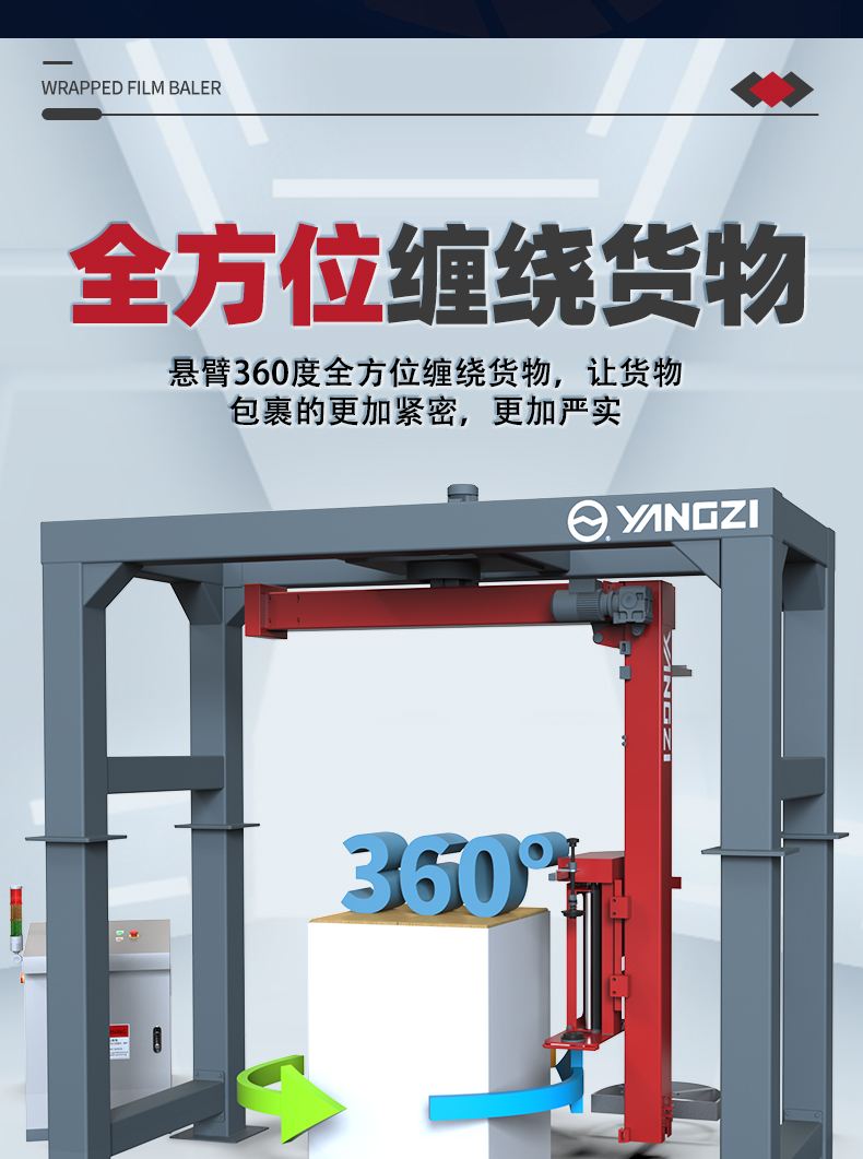 • 扬子龙门架缠绕膜打包机是一款专为集成化流水线生产而设计的高效包装设备。它采用悬臂式结构,能无缝对接输送线,实现货物的自动感测、对中、缠绕和输送,全程无需人工干预,完美满足现代化流水线的高节拍生产需求。该设备核心优势在于其高效的包装能力,包装效率通常可达25-40托/小时,部分型号甚至更高。