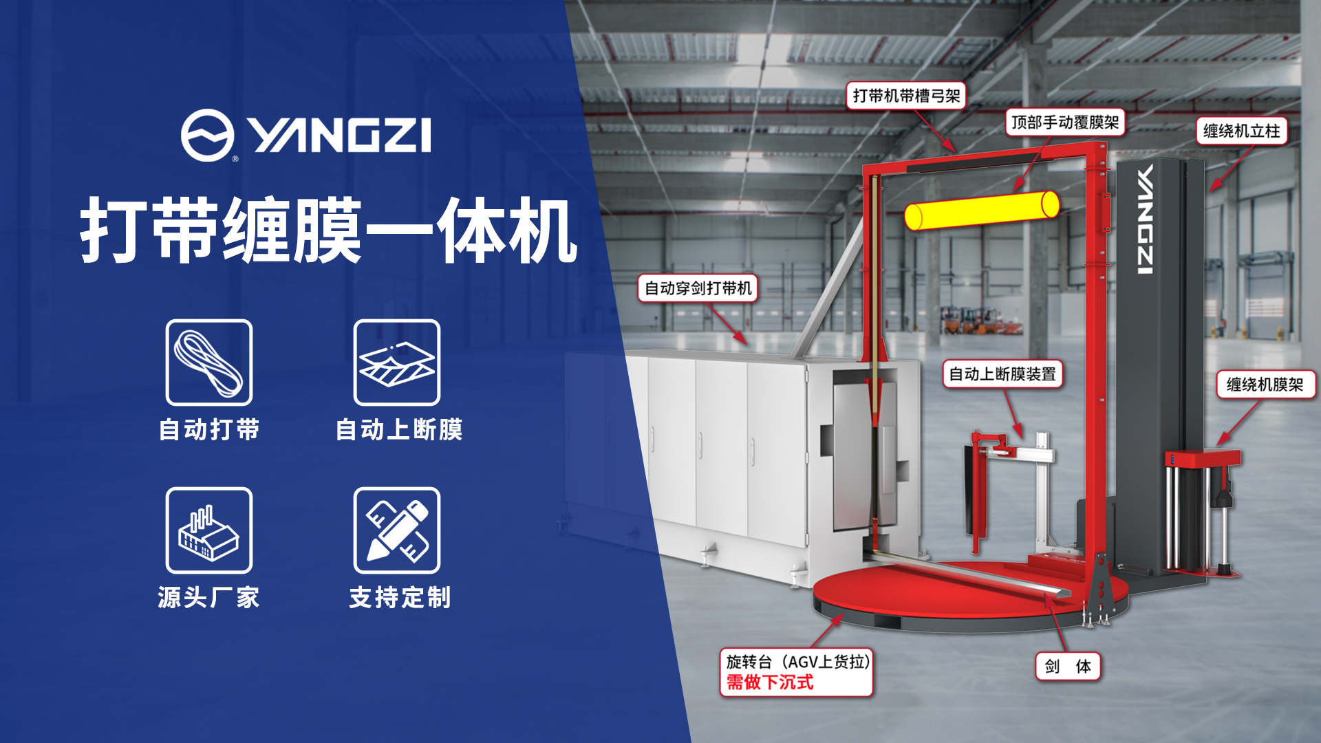 欧姆龙选择扬子打带缠膜一体机,采用“井字打带”提升包装稳定性,优化供应链效率。