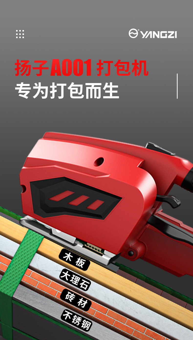• 扬子电动打包机是一款高效便捷的包装工具,专为物流、仓储及工业生产中的捆扎需求设计。它采用电动驱动方式,操作简单省力,能快速完成塑料打包带的束紧、热熔焊接和切断过程。该设备打包牢固整齐,显著提升捆扎效率与质量,有效替代传统手动打包方式。其紧凑的结构设计便于携带与使用,广泛适用于各类纸箱、托盘及重型货物的打包固定,是企业实现包装自动化、提升作业效率的理想选择。