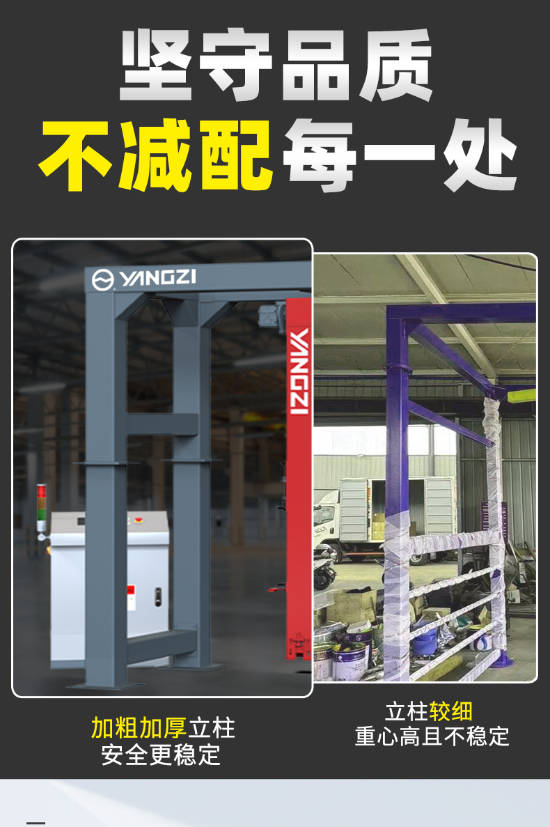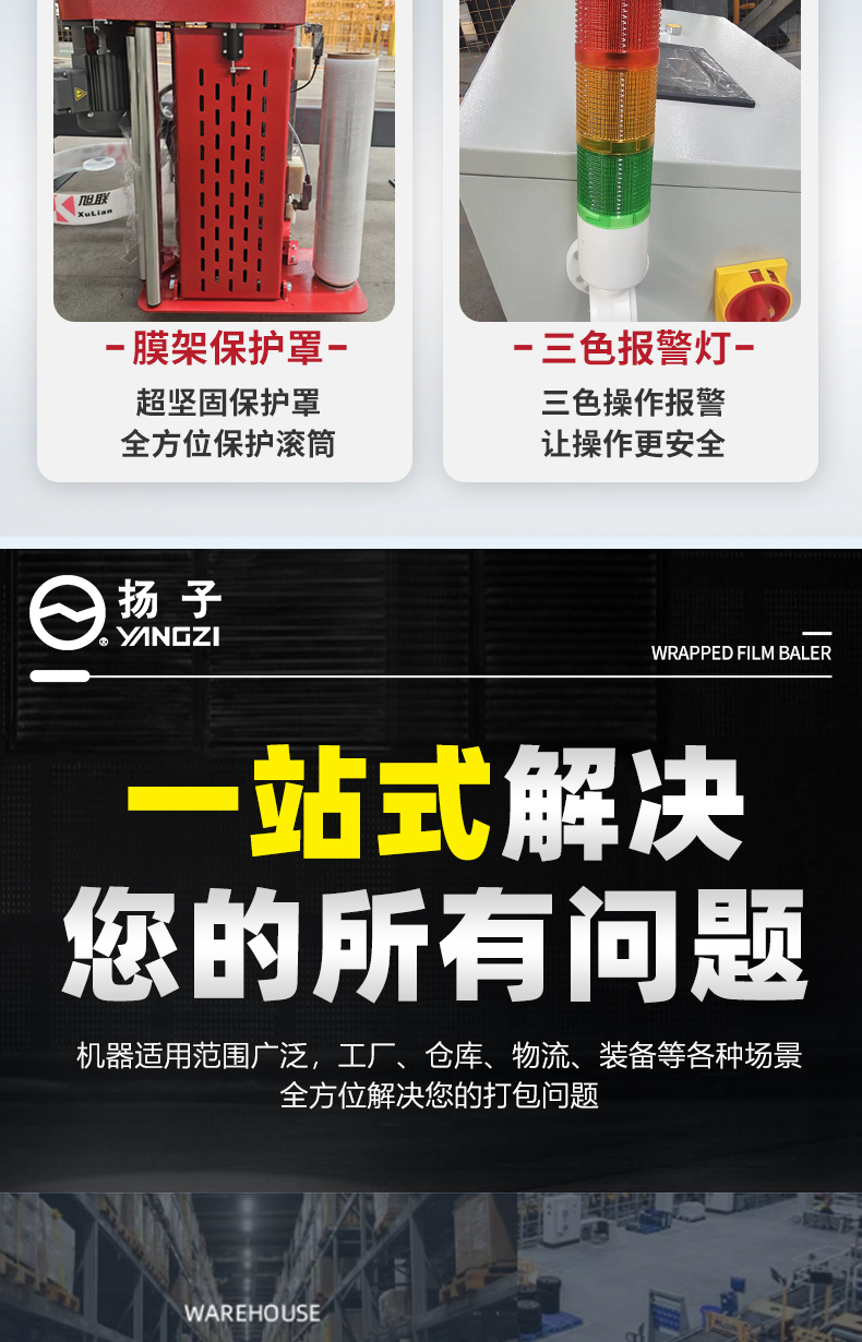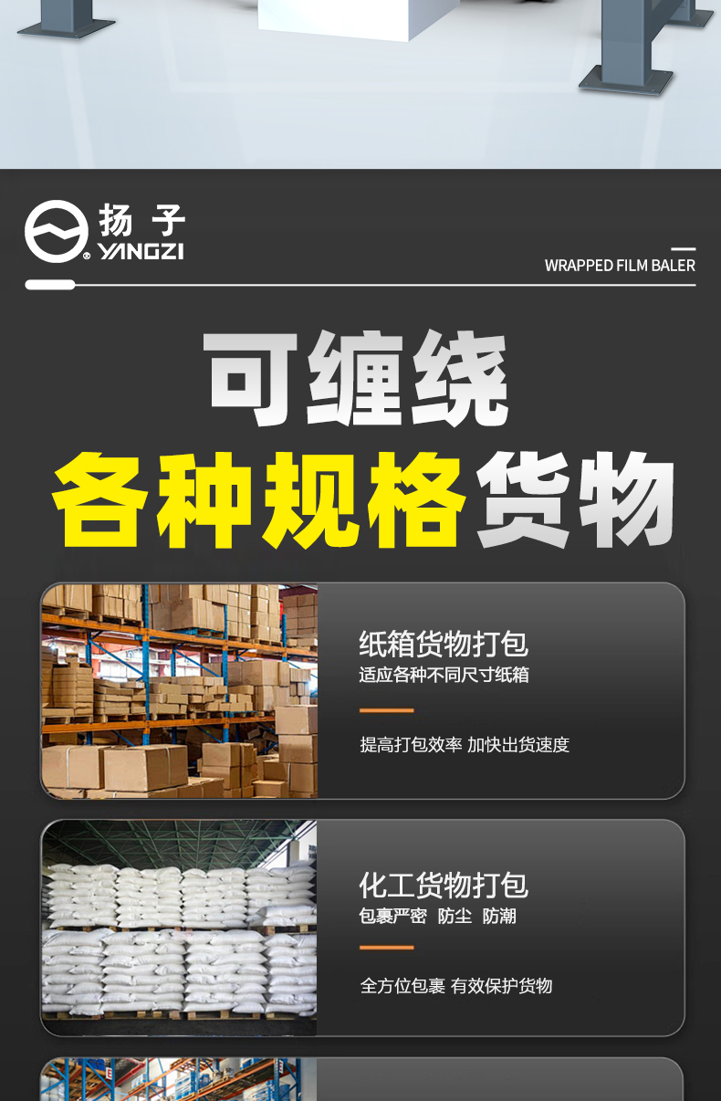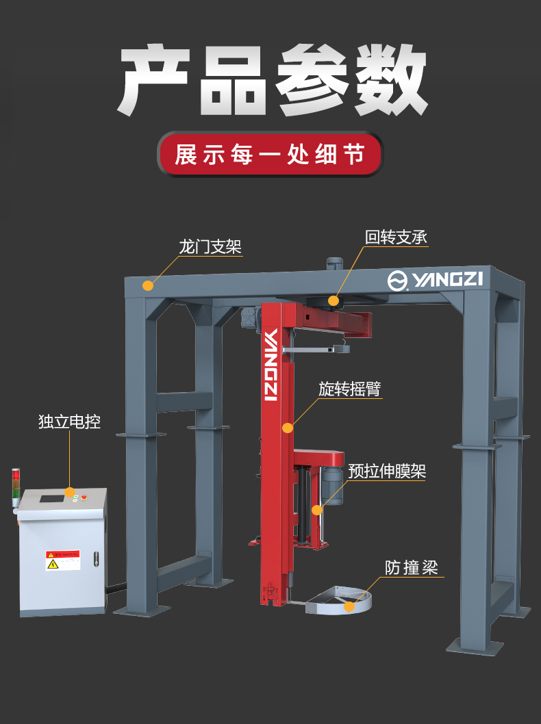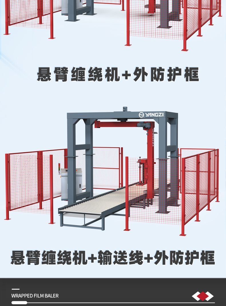 • 扬子龙门架缠绕膜打包机是一款专为集成化流水线生产而设计的高效包装设备。它采用悬臂式结构,能无缝对接输送线,实现货物的自动感测、对中、缠绕和输送,全程无需人工干预,完美满足现代化流水线的高节拍生产需求。该设备核心优势在于其高效的包装能力,包装效率通常可达25-40托/小时,部分型号甚至更高。